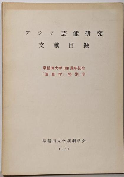 アジア芸能研究文献目録 早稲田大学100周年記念「演劇学」特別号