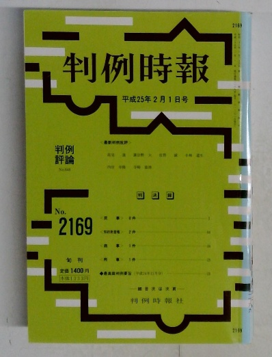判例時報 平成25年2月1日号 No.2169