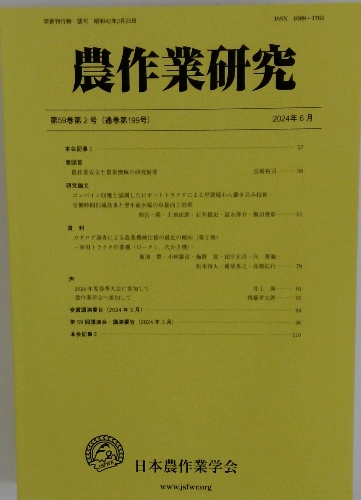 農作業研究 第59巻第2号(通巻第199号)