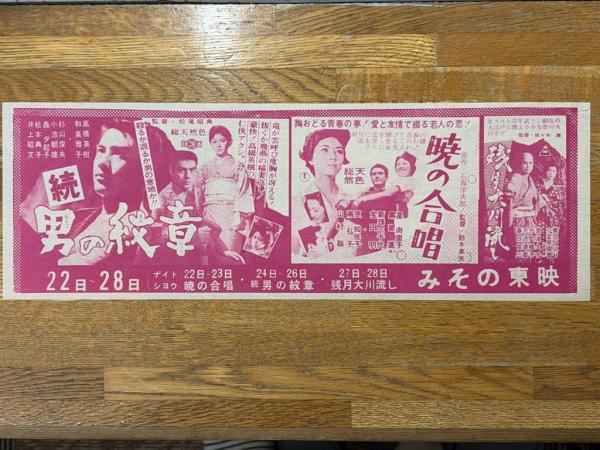 映画チラシ 続男の紋章・暁の合唱・残月大川流し みその東映