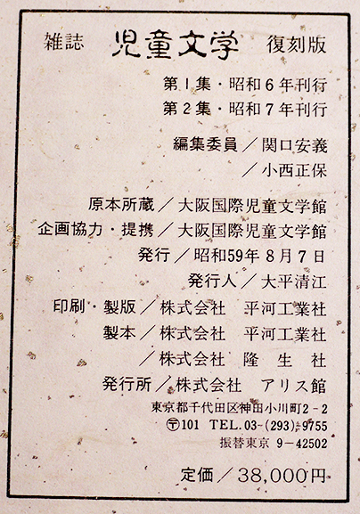 複刻版 雑誌「児童文学」(全2巻解説書付)第一集=昭和6年/第二集=昭和7年 関口安義/小西正保編集 アリス館 昭和59年