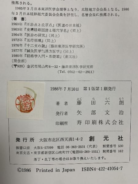 経絡学入門 臨床応用篇 創元社 藤田 六朗