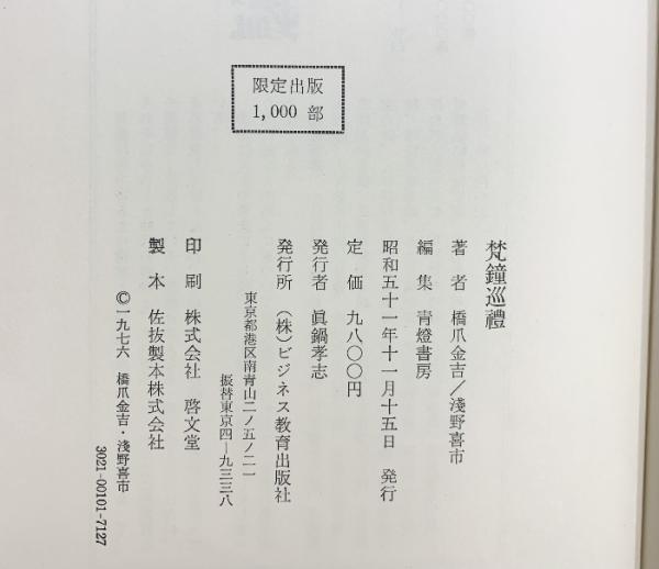 【限定1000部】梵鐘巡禮 ビジネス教育出版 橋爪金吉・浅野喜市 昭和51年