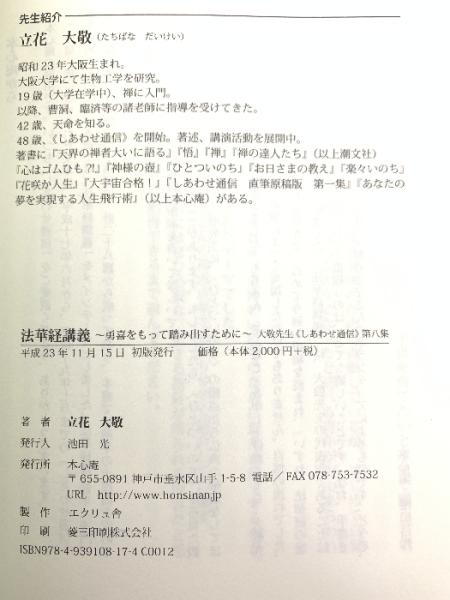 法華経講義 ~湧喜をもって踏み出すために~ 大敬先生《しあわせ通信》第八集 本心庵 立花大敬