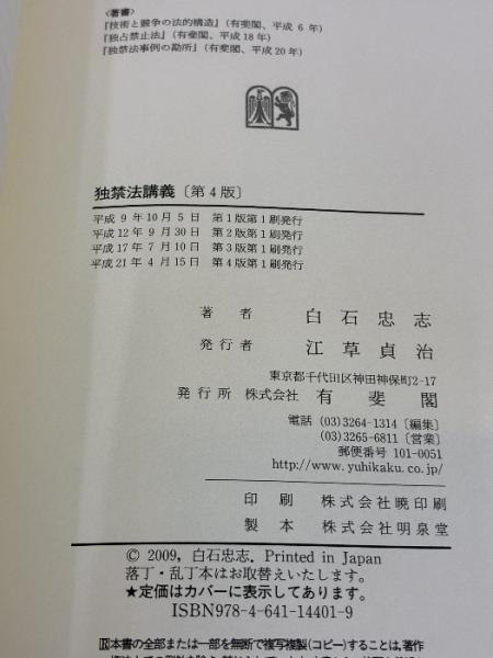 独禁法講義 第4版 有斐閣 白石 忠志