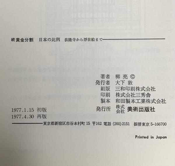 続 黄金分割 日本の比例 法隆寺から浮世絵まで 美術出版社 柳 亮