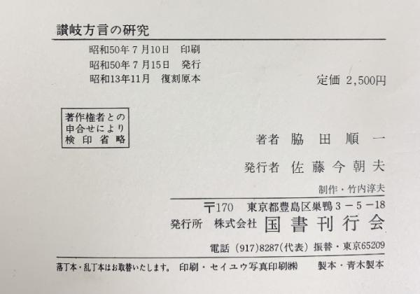 讃岐方言の研究 国書刊行会 脇田順一:著 [全国方言資料集成]昭和50年