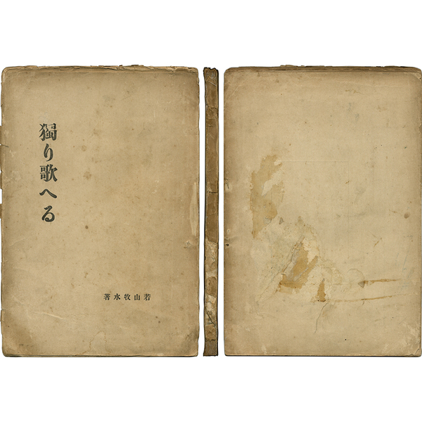 • 解説 初版 第2歌集 裏表紙少スレ少汚レ 背一部欠損補修有 23.7×16.4糎 外装なし完本 桐箱入 牧水の代表する15歌集の内の第2歌集。明治42年7月「中央新聞」記者となったが12月初めには退社、翌43年1月にこの歌集を出版する。この後3月には東雲堂創刊の詩雑誌「創作」の編集者として文壇的にも注目され、4月には第3歌集「別離」を刊行、同門の前田夕暮とともに新しい自然主義傾向の歌人として「牧水・夕暮時代」を出現させた。牧水は父親が医者であるにもかかわらず歌人としての生涯を送り、酒を愛し旅を愛した最も歌人らしい近代歌人として、その歌はいまなお広く愛されている。