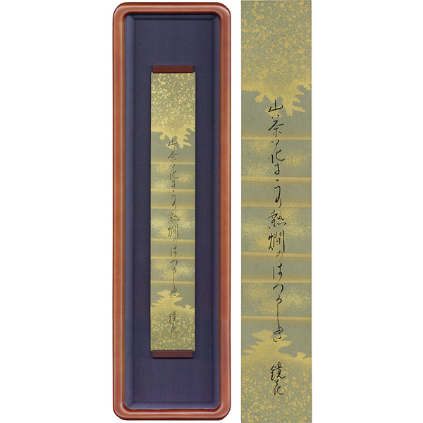 • 解説 『山茶花に この熱燗の はつかしき 鏡花』 金泥下絵入 額面54×15.5糎