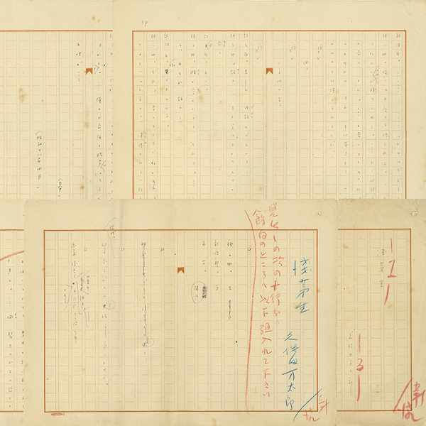 • 解説 『浅茅生』 ペン400字詰表題共完 末に「昭和十八年四月」 欄外に赤ペンで「新潮」 戯曲草稿 「徳之助。兄 新次郎。弟 安吉。隣人 ~」 全集収録(1967刊、内容は未確認、目次に有)