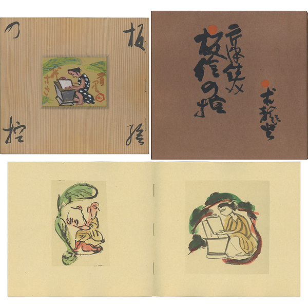 • 解説 特製50部 毛筆署名入 吉野杉板材装自筆板絵嵌込表紙(毛筆題字入) 別葉「体裁内容説明書」付 柿渋特漉夫婦函・外函少ヤケ 定価60万円 板絵(8.5×11㎝)は全50作異なった図柄
