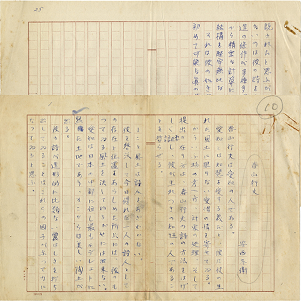 • 解説 『春山行夫』 ペン400字詰完 「春山行夫は愛知の人である。愛知とは知慧を愛する義だと、彼は彼の生れた風土に限りない愛惜の情を寄せてゐる。かういう物の考へ方、対象の処理、そして提出の在り方は、~」
