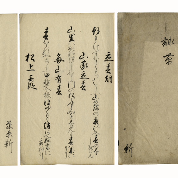 • 解説 一頁7行書 49枚 巻末に「藤原新」の署名あり 原表紙 表題「詠草 新」 28×19.5糎 本文は立春期・山家立春・毎山有春・松山霞・名所霞・海上霞など約400首を収録。《鈴木新》:文化十三年(1816)~明治十六年(1883)国学者・歌人、江戸の人。幼少より一橋家に仕え、お伽衆・小姓・頭取奥話・広敷用人などを務める。はじめ行方六座衛門に学び、のと独学で広く和漢の書に通じ、殊に和歌をよくした。蔵書家としても知られる。