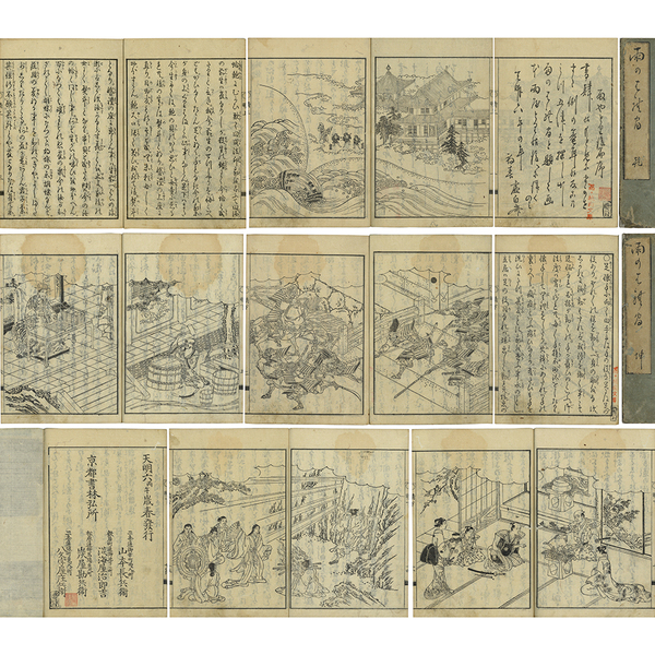 • 解説 上19枚3図・下18枚4図 図は全て見開き 原表紙 原題簽 22.5×15.8糎 拵帙入 シミ頁有