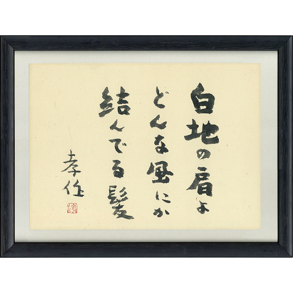 • 解説 『白地の肩よ どんな風にか 結んでる髪 孝作[落款]』 25×34.7糎 横型F4色紙 額面33.5×45.5糎(外箱なし)