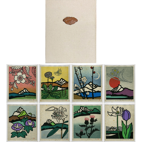 • 解説 限定35部 多色刷木版画12葉揃 たとう・木版共にシミ有 未綴 陶板嵌込夫婦函 夫婦函裏に毛筆表題署名落款入(少シミ) 拵帙入
