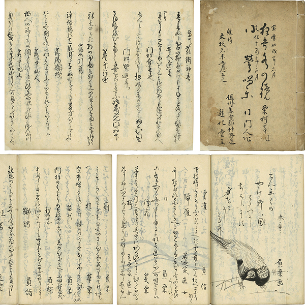 • 解説 水の鏡40枚表二共(序4枚表二共・本文31枚・跋3枚・追加2枚)/鶯唱楽14枚(表題1枚・序2枚・本文11枚) 原表紙 25.2×17.8糎 拵帙入 <狂歌水の鏡 宝暦四年成/狂歌鶯唱楽 文化十年成>