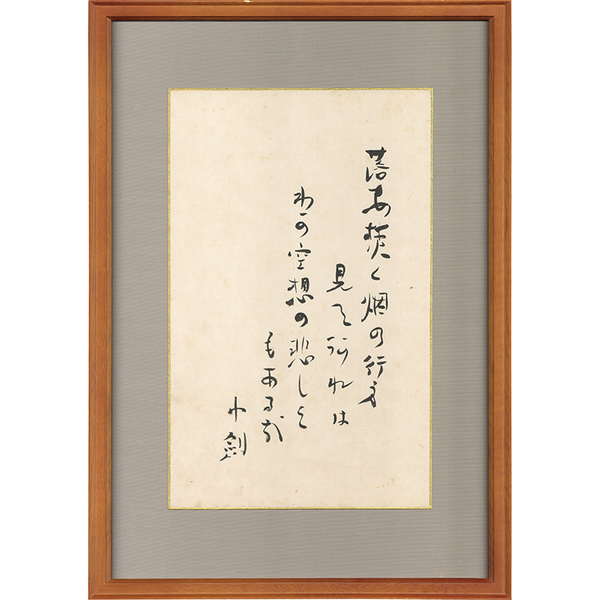 • 解説 『落葉焚く烟の行方見てあれは わか空想の悲しさもある哉 小剣』 紙面30×19糎 額面43×30.5糎 額少キズ有