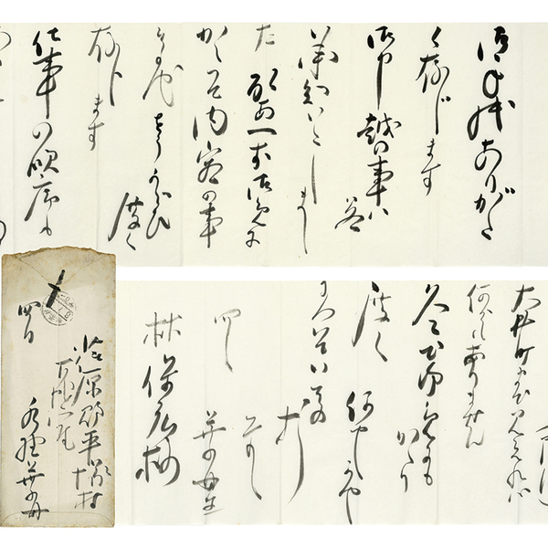 • 解説 春陽堂 林保広宛 大正6年7月4日 毛筆22行 封筒付 「御手紙ありがたく存じます 御申越の事ハ承知いたしますした 取あへず御めにかかって内容の事その他をうかがひ度く存じます ~」