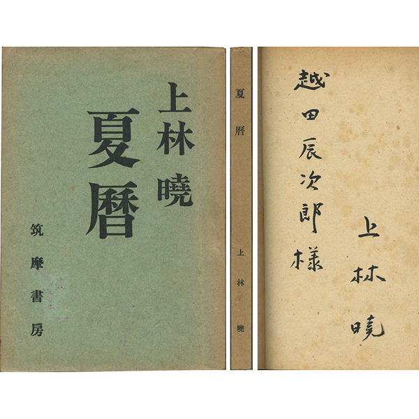 • 解説 初版 越田辰次郎宛毛筆署名入 背ヤケ少傷ミ 本文少ヤケ少シミ
