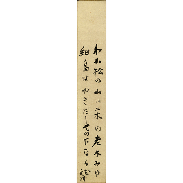 • 解説 『わか松の 山に二木の老木みゆ 細井はゆきたしその下ならむ 文明』 裏面に旧蔵者書入れ有