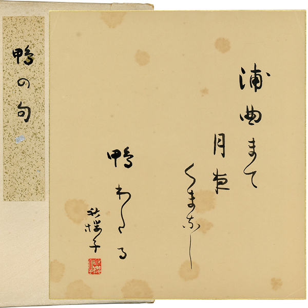 • 解説 『浦曲まて 月夜くまなし 鴨わたる 秋桜子[落款]』 シミ有 自題「鴨の句」たとう付(少傷ミ)