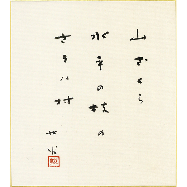 • 解説 『山ざくら 水平の枝の さきに村 林火[落款]』