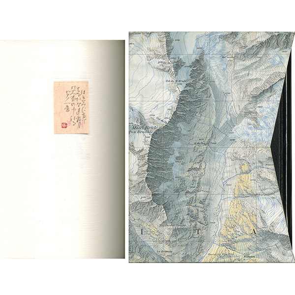 • 解説 私家本111部 ペン歌「ほゝゑみに肖てはるかなれ霜月の火事の中なるピアノ一臺」落款入小紙片貼付 背・角革装 天金 二重函