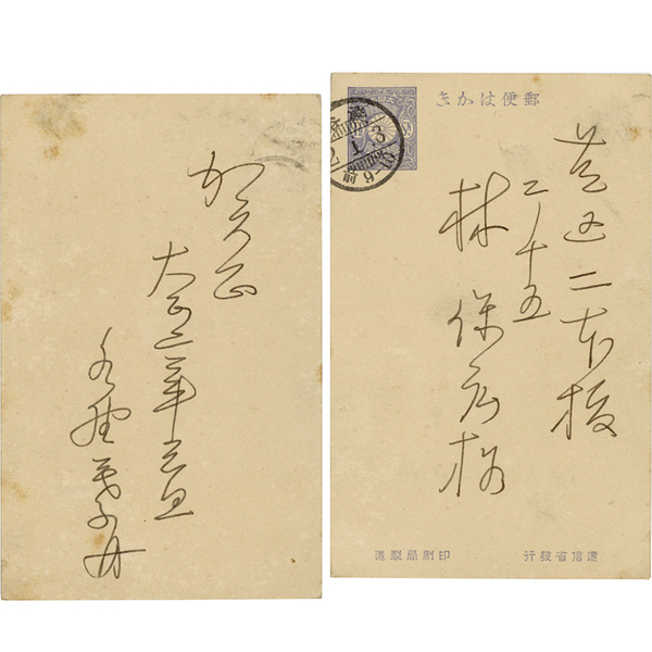 • 解説 林保広宛 大正2年1月3日 ペン3行 「賀正 大正二年元旦 水野葉舟」