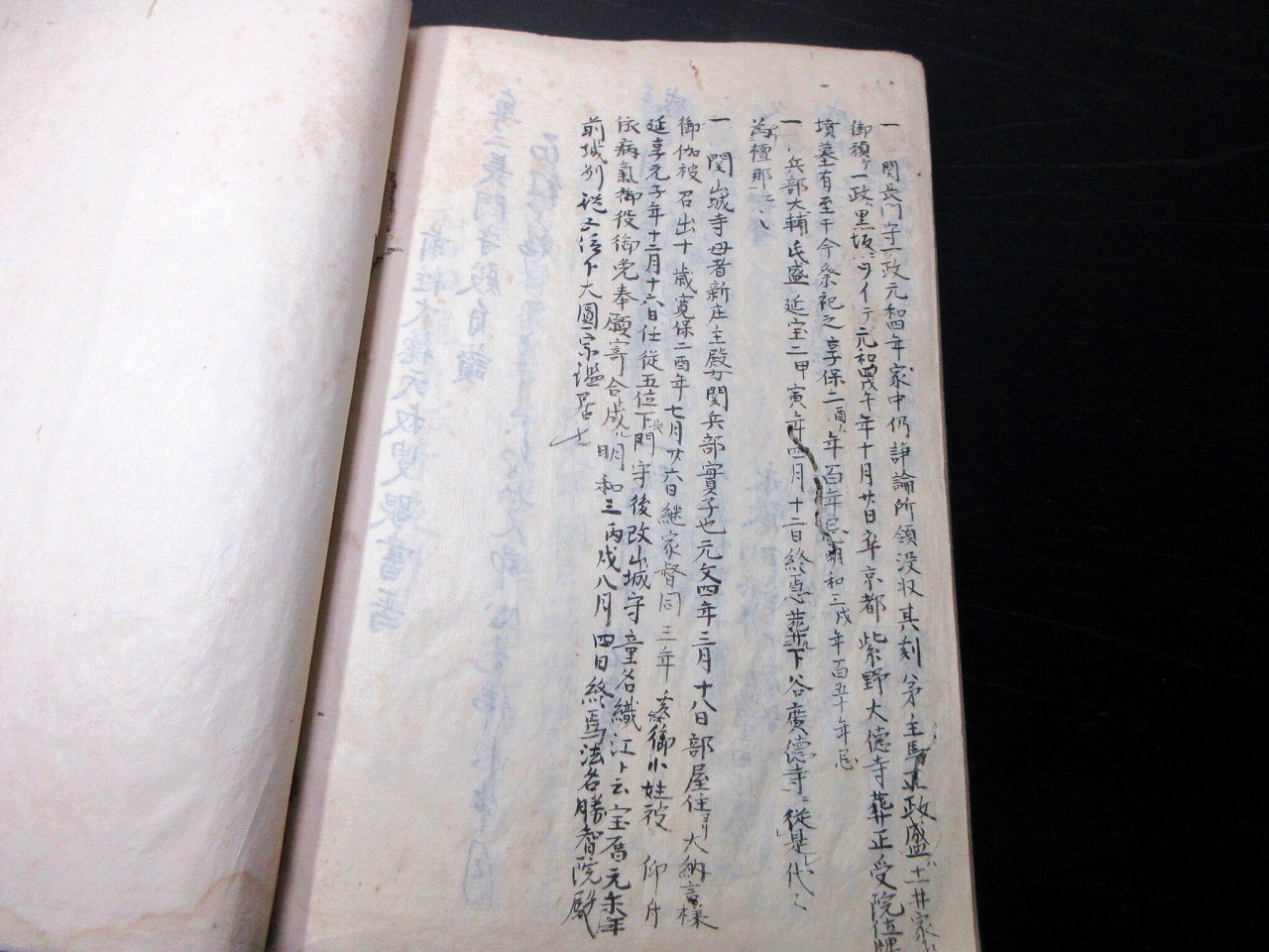 20丁。28.5cm×19.5cm。手書き。シミ、シワ、虫食いあり。状態は並下。