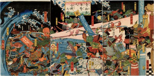【浮世絵】青物魚軍勢大合戦之図 3枚続