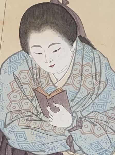 ▶ 袴姿に黒い革靴を履く女学生の、清楚な、ひと時の静かな読書風景に、心が癒されます