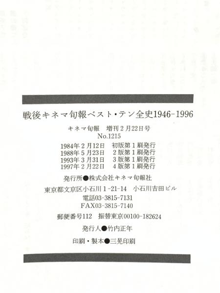 キネマ旬報増刊 2月22日号 戦後キネマ旬報ベスト・テン 全史1946-1996 1997 キネマ旬報社