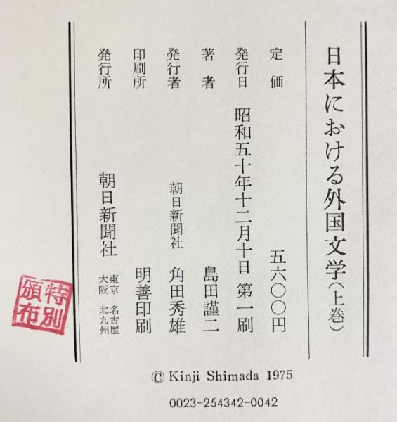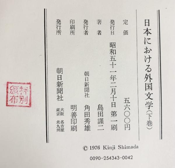 日本における外国文学(上・下/全2冊セット)朝日新聞社 島田謹二 昭和50年