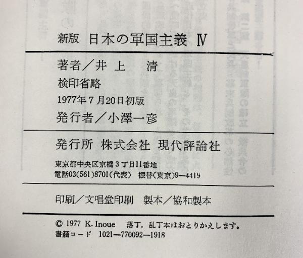 新版)日本の軍国主義(1~4/全4冊セット)現代評論社 著:井上清 1975年~