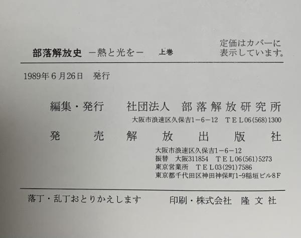 部落解放史 上巻: 熱と光を 部落解放研究所 部落解放研究所編
