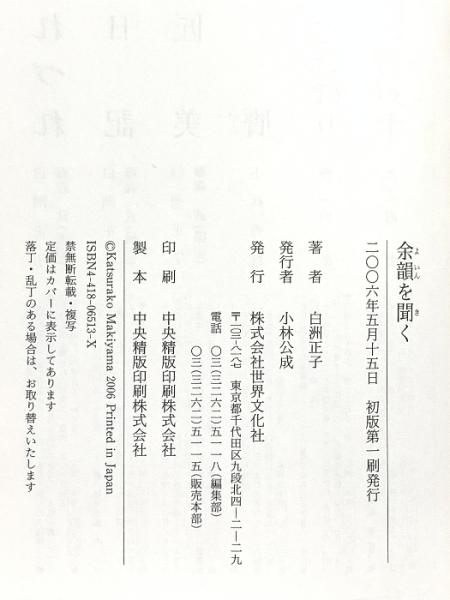 余韻を聞く 世界文化社 白洲 正子