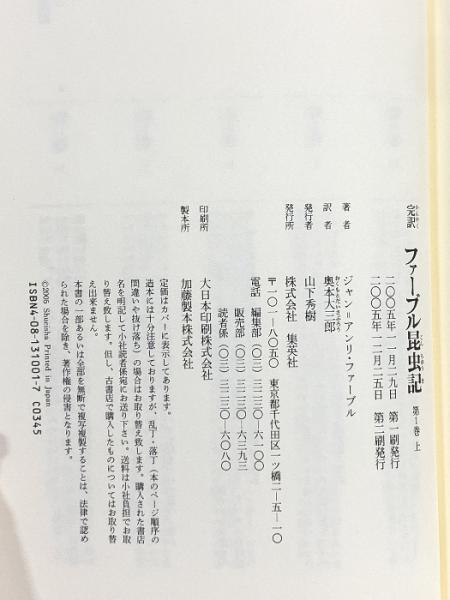 完訳 ファーブル昆虫記 第1巻 上 集英社 ジャン=アンリ・ファーブル
