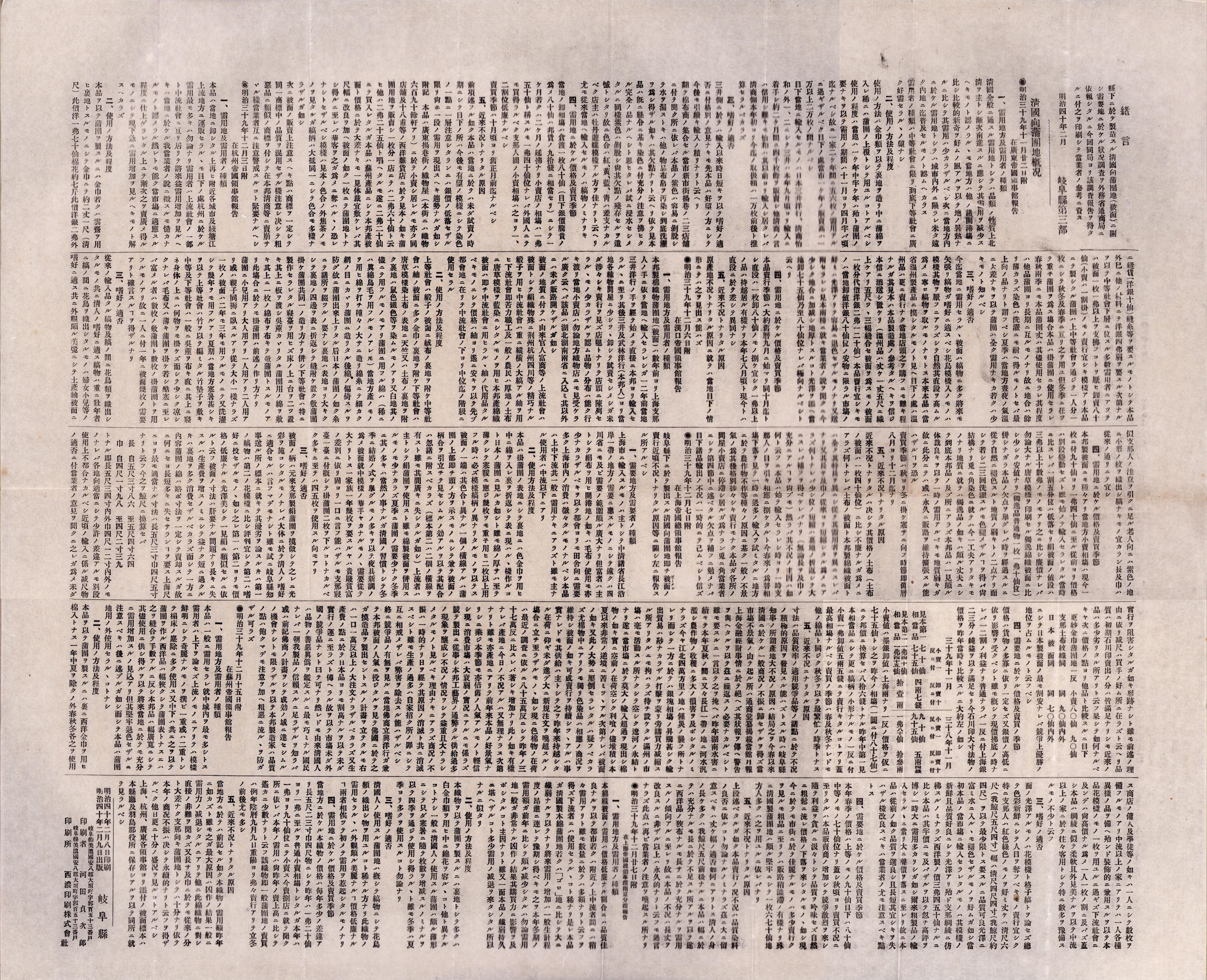 (一枚刷)清国向蒲団地概況 -明治40年-(岐阜県)
