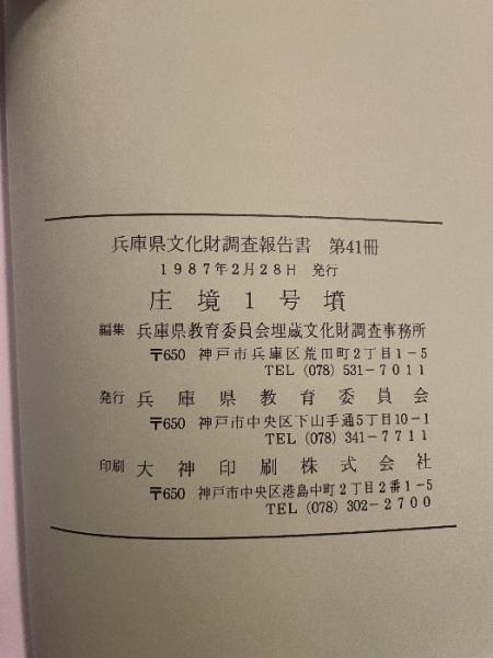 庄境1号墳  <兵庫県文化財調査報告> 兵庫県教育委員会埋蔵文化財調査事務所編