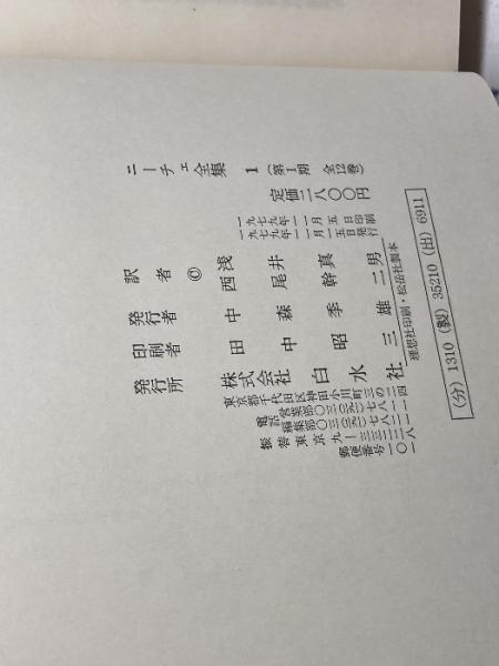 ニーチェ全集 第1期 1巻  悲劇の誕生 白水社