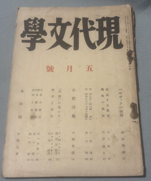 現代文學3巻4号 背表紙がほとんど剥がれている。そのためページがバラバラになりかけている。小熊秀雄「小膽詩集」 平野謙 大井広介 中田宗男「水の面」