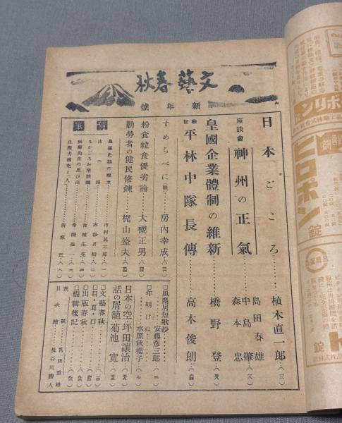 文藝春秋 昭和19年新年号 「神州の正気」座談会 戦記平林中隊長 徳田秋声の思い出に関する記事(タイトル「秋声先生の思い出」) 船橋聖一 第22巻第1号