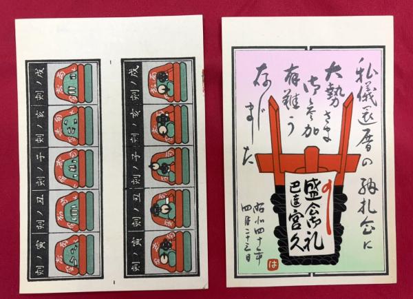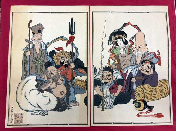 • 解説 納札大津絵 七福神 是真画集 川柳漫画等木版納札50枚(文字のみも含む) 約38×30のファイルに収納