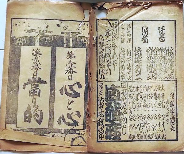 歌舞伎興行案内 明治35年 番付 図示 心と心 当り的 日本橋区中割橋 真敬座 座主 佐々木〇和本古書古文書