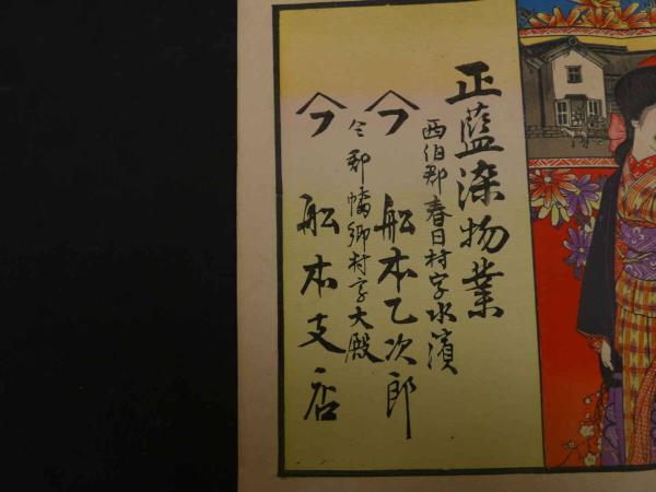 6 2 ②引札 引き札 正藍染物業 西伯郡春日村字水濱 舩本乙次郎 今郡幡郷村大殿 舩本支店 石版色刷
