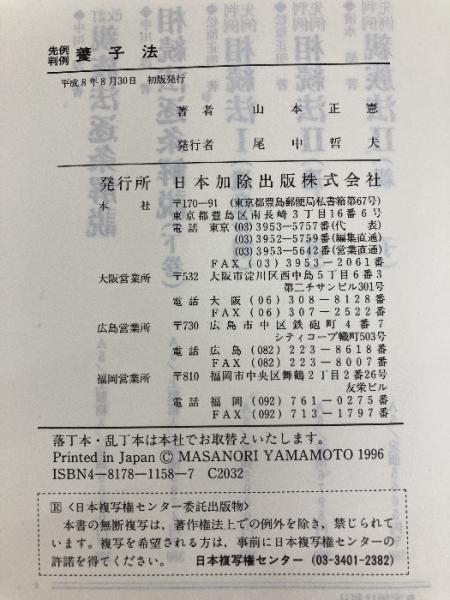 先例判例 養子法 日本加除出版 山本 正憲
