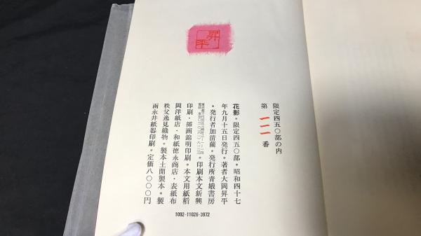 007『著者署名サイン入り 花影』●限定450部のうち111番