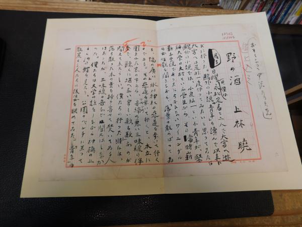 「上林暁 草稿 野の酒 原稿用紙 6枚」