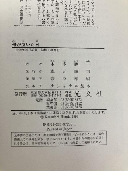 母が泣いた日 光文社 本多 勝一